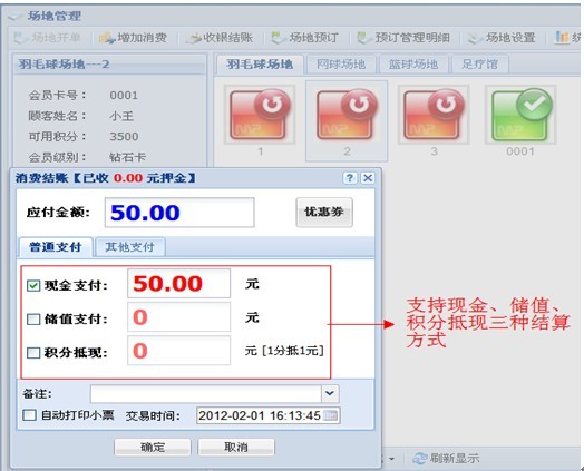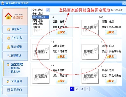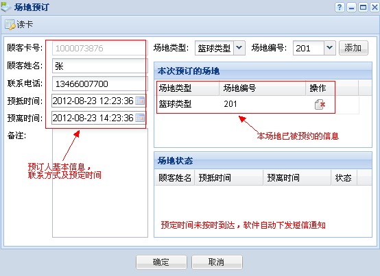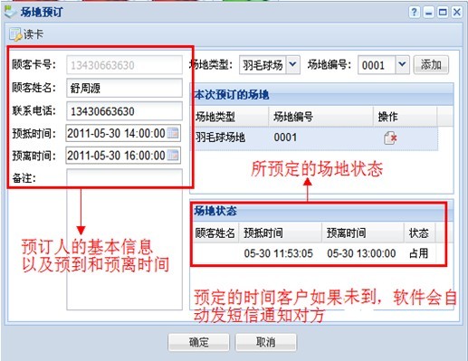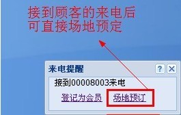 支持現場預訂、電話預訂、電腦在線預訂和手機在線預定。電話預訂自動抓取預訂人聯系方式。預約后短信自動下發短信通知已成功預約、預約時間前軟件自動下發短信通知預約人。網上預訂,會員直接登錄商家的官方網站,通過賬號進入預定所選的場地,來到現場后直接下單開場消費;既節約了雙方的時間,又提升的商家的檔次。