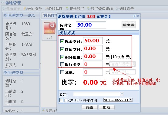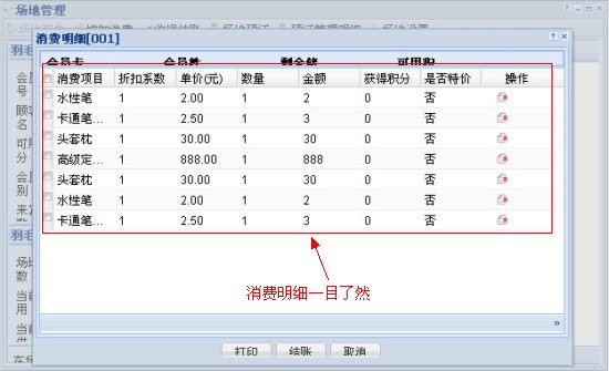 (4) 結賬時消費明細一目了然,支持現金支付、儲值卡支付、積分抵現等結賬方式。