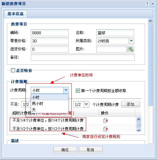 設定消費項目的計費周期,商家自行設定適合自己的計費規則。