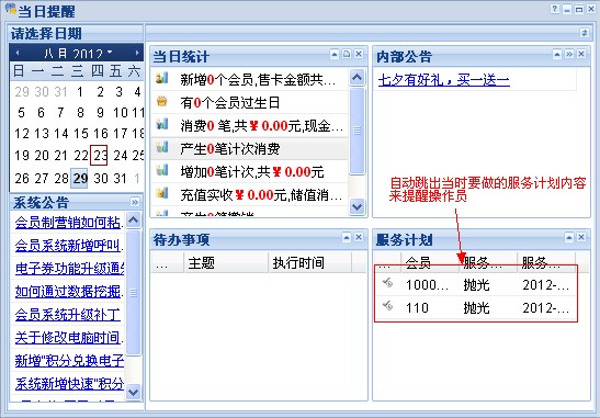 3、今日提醒中,有當天的服務計劃列表,提醒店員: