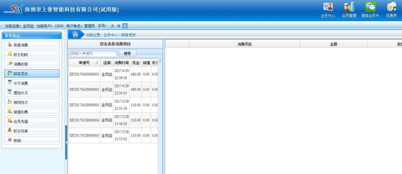 顧客退貨:用于顧客在消費(fèi)后,商品質(zhì)量問題或選用的商品不合適等,可使用該功能退貨。