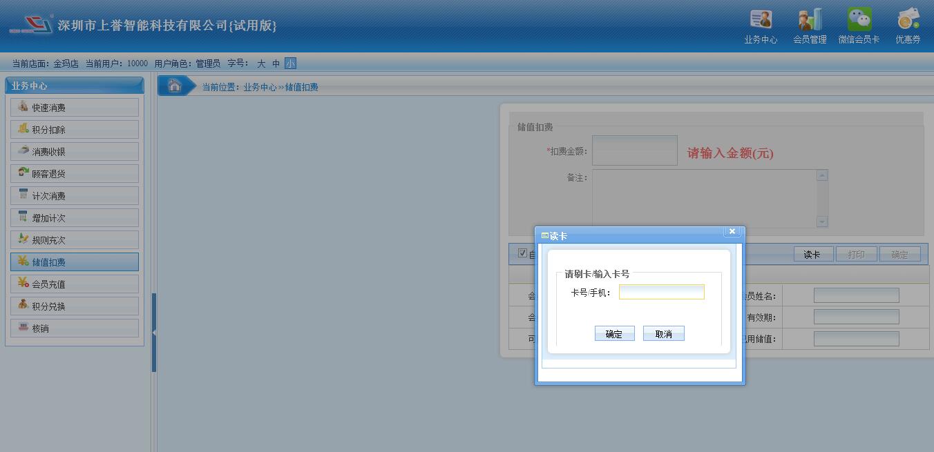 儲(chǔ)值扣費(fèi):用于會(huì)員卡儲(chǔ)值直接消費(fèi)。
