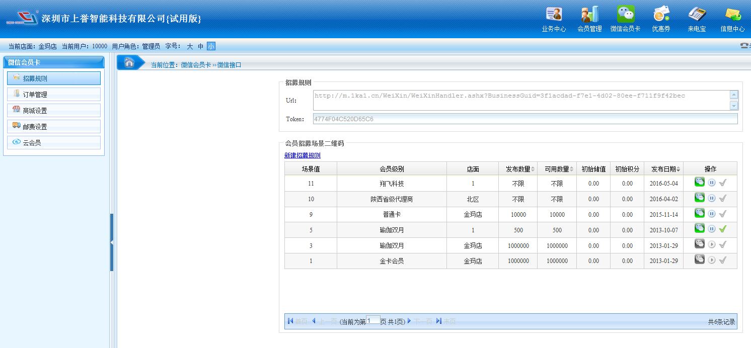 微信會員卡功能有:招募規(guī)則、訂單管理、商城設(shè)置、郵費設(shè)置、云會員等等。 招募規(guī)則:用于微信公眾號對接接口。