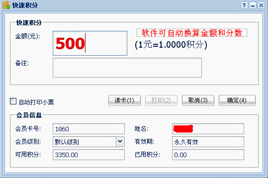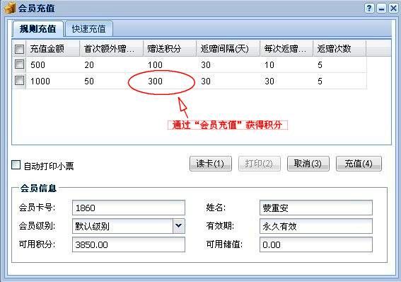 3、充值積分:通過會員卡充值,亦能設置積分
