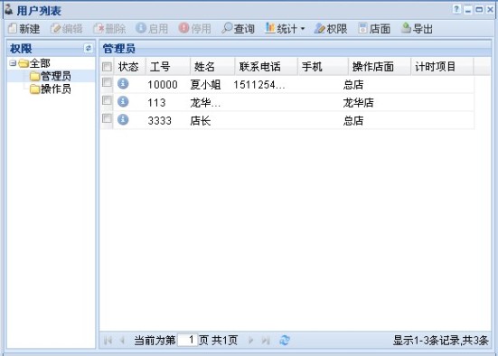軟件內(nèi)置管理員和操作員兩種權(quán)限,管理員權(quán)限為最高權(quán)限,可設(shè)定下屬各個工號店面的權(quán)限,管理員還可設(shè)定不同工號店面登陸后查看的數(shù)據(jù)范圍不同。其他權(quán)限如:財務(wù)、前臺、區(qū)域經(jīng)理或客服經(jīng)理,由管理員任意創(chuàng)建并分配權(quán)限,指定數(shù)據(jù)查看范圍。