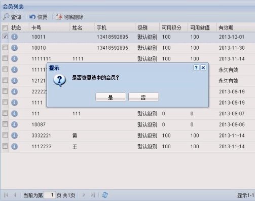 (2) 對刪除掉的會員進(jìn)行撤銷(防止店員惡意刪除會員資料);